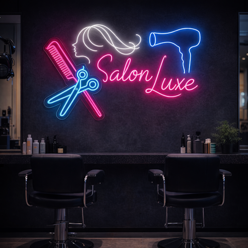 Kuaför salonları, yaptıkları işlemleri sosyal medyada paylaşarak müşteri kazanır. Neon tabelalar bu paylaşımları daha etkileyici hale getirir.